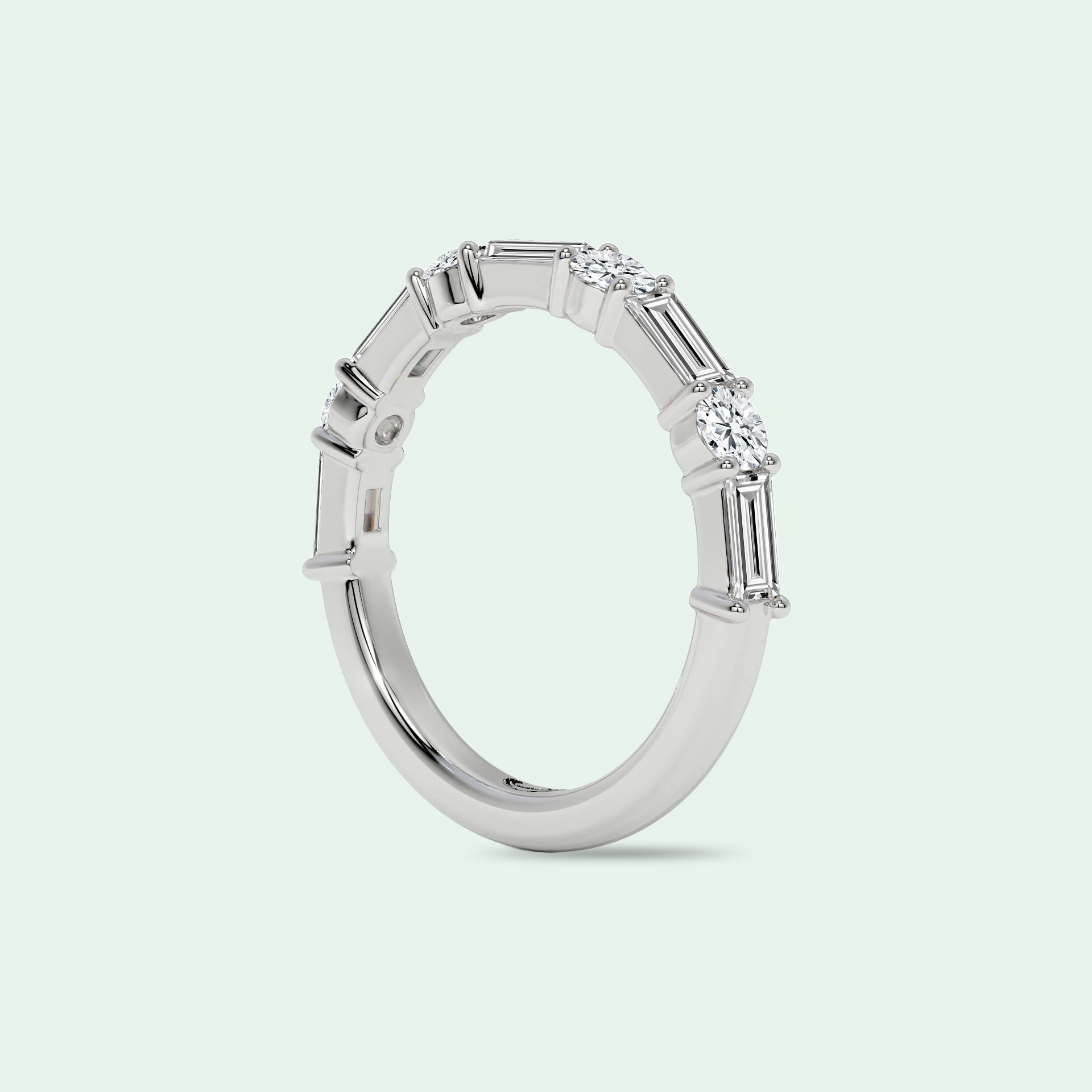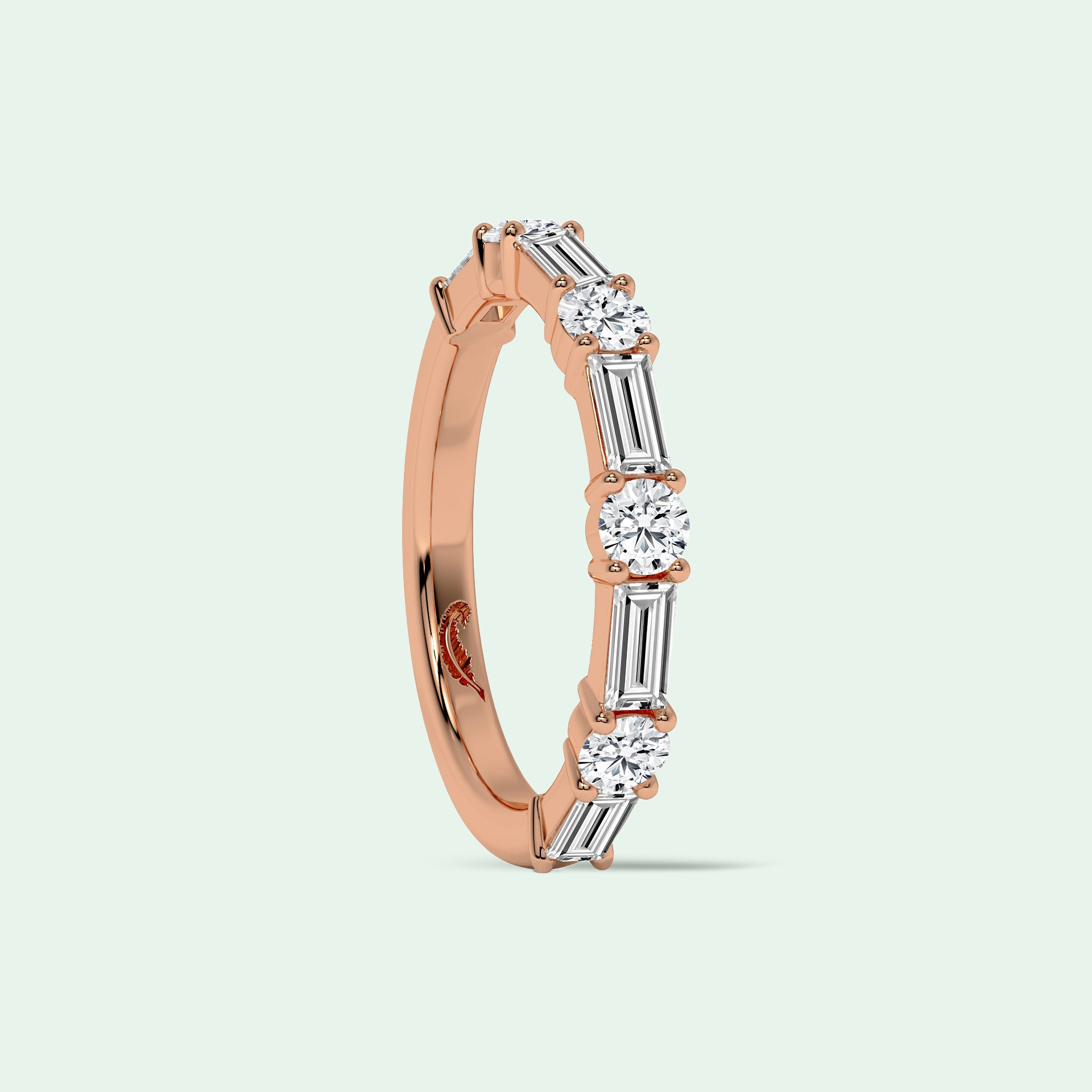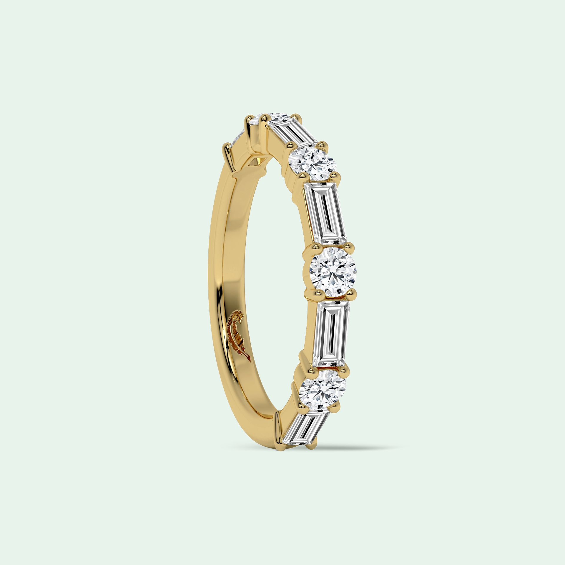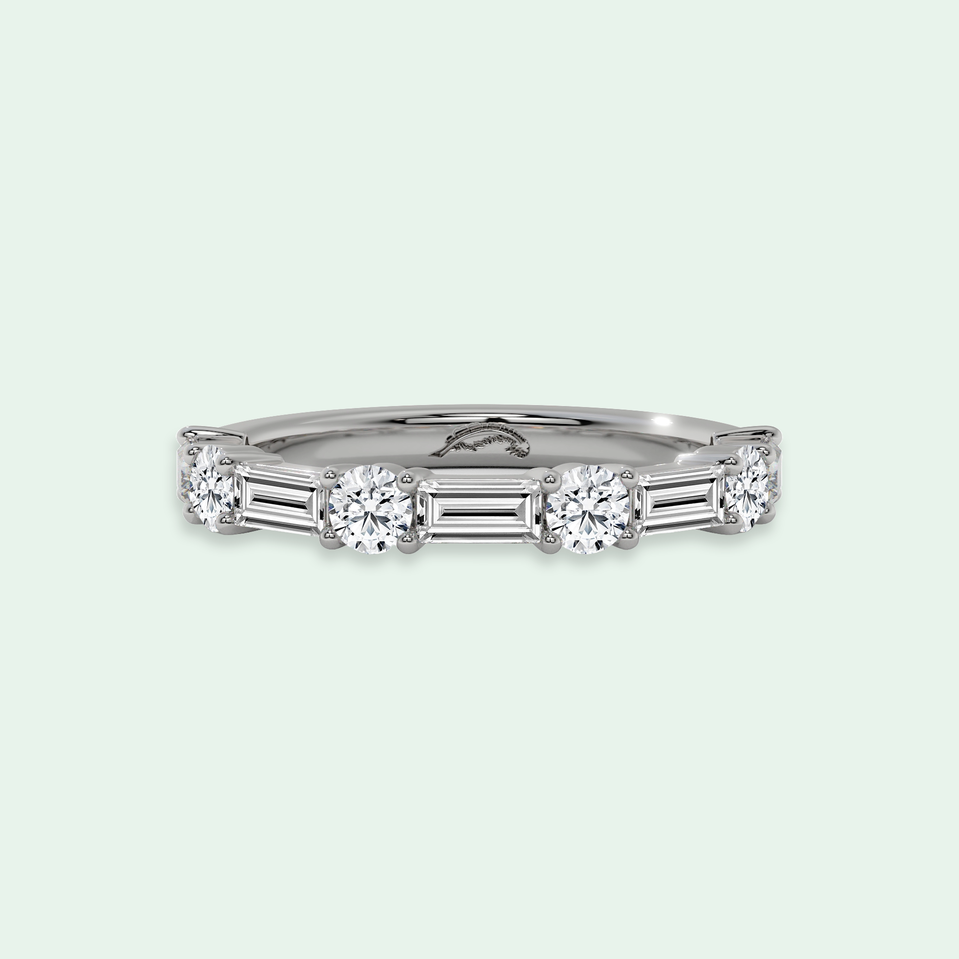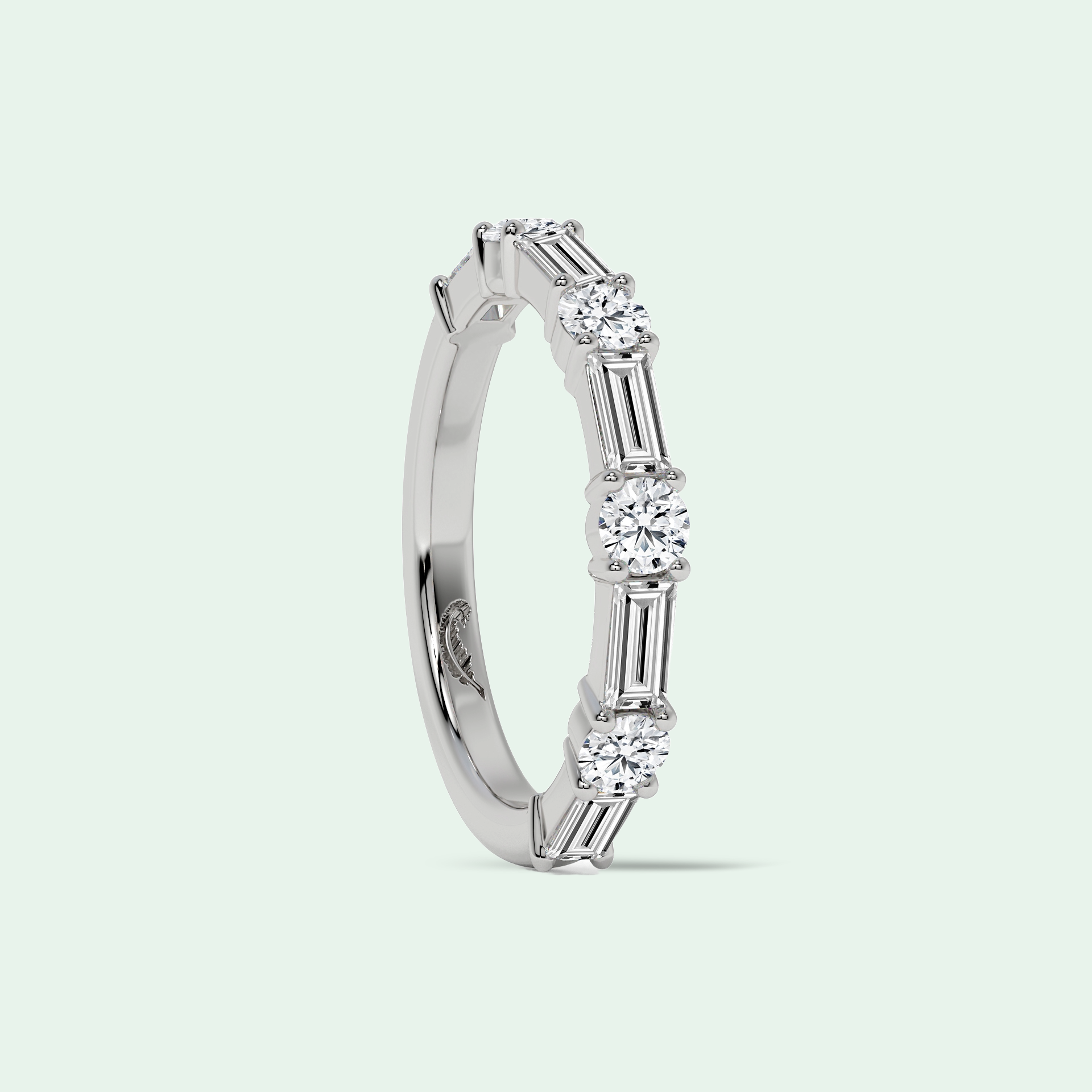 Let your bride fall in love with this AVA Baguette Wedding Ring the way she has fallen for your! The spellbound glow of the round baguette set gently within the clasp of the four claws depicts your unwavering commitment to this relationship.
