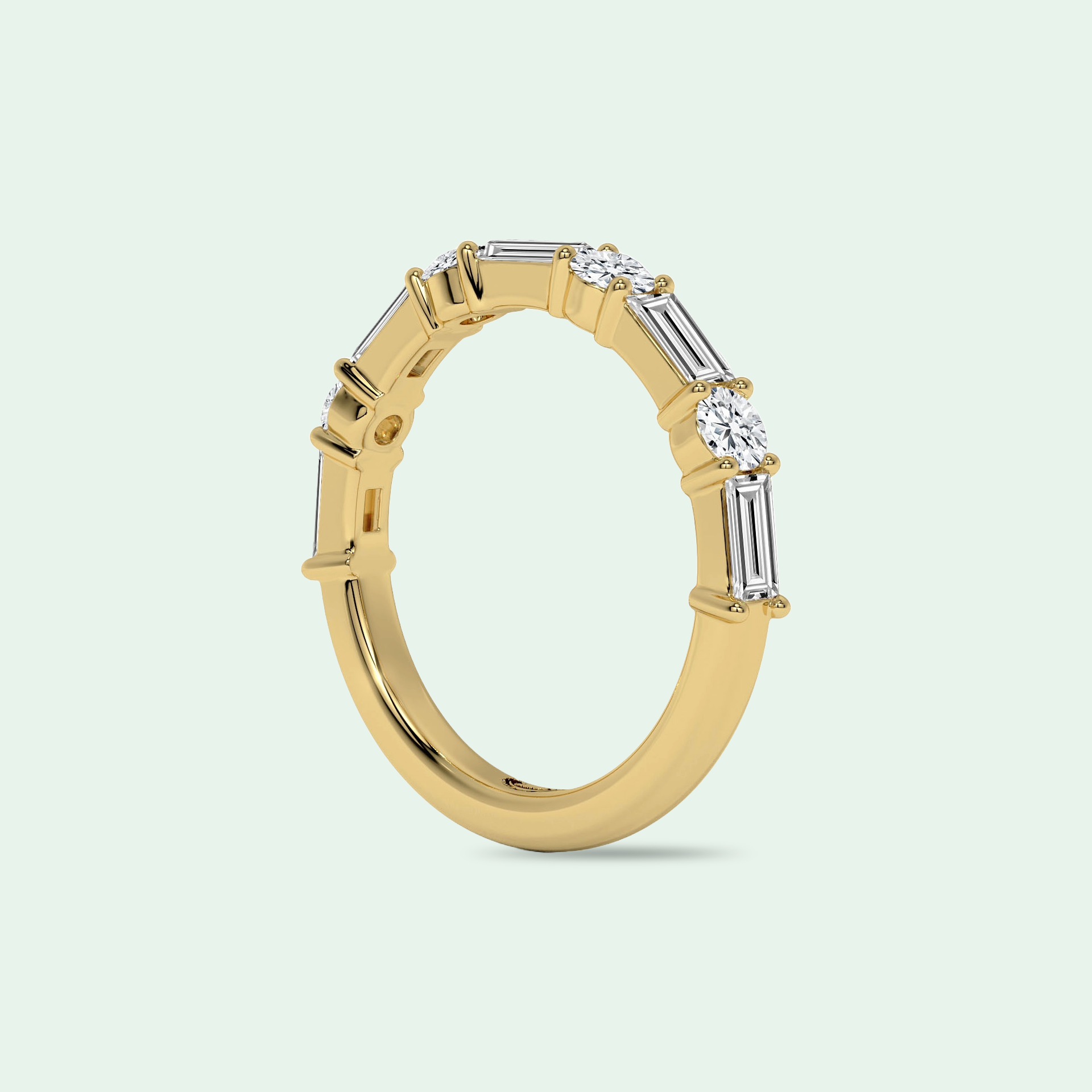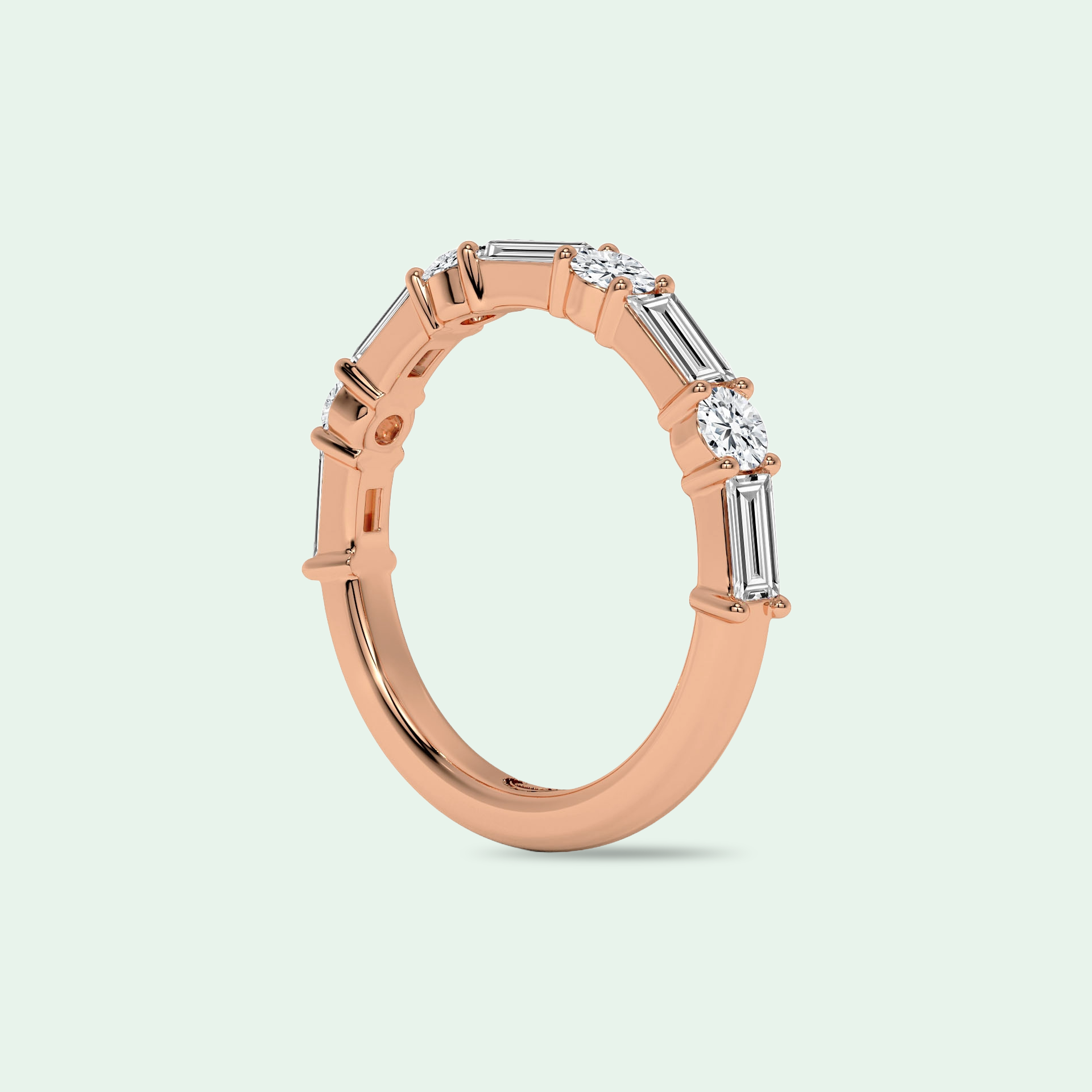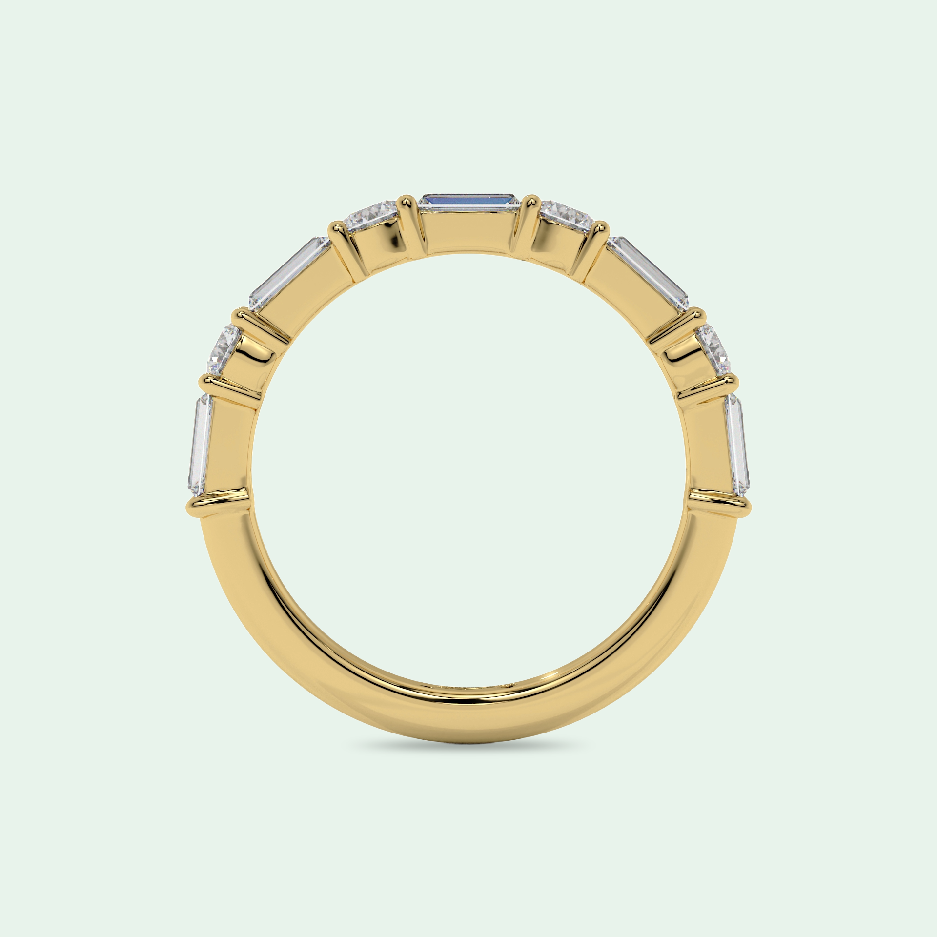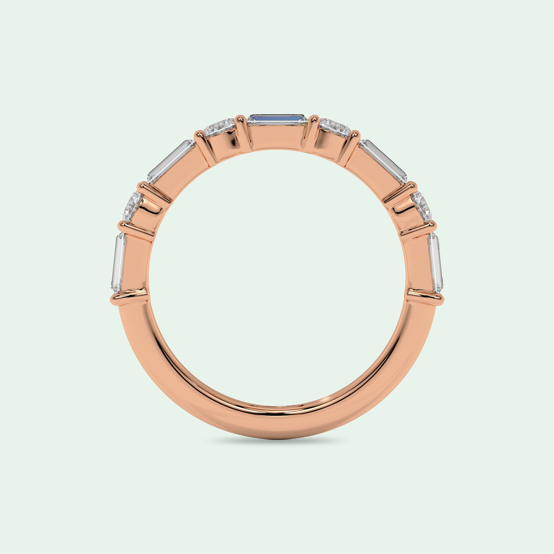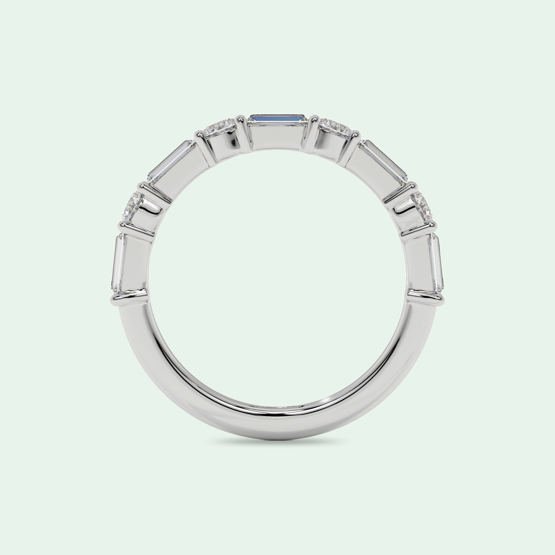 Let your bride fall in love with this AVA Baguette Wedding Ring the way she has fallen for your! The spellbound glow of the round baguette set gently within the clasp of the four claws depicts your unwavering commitment to this relationship.
