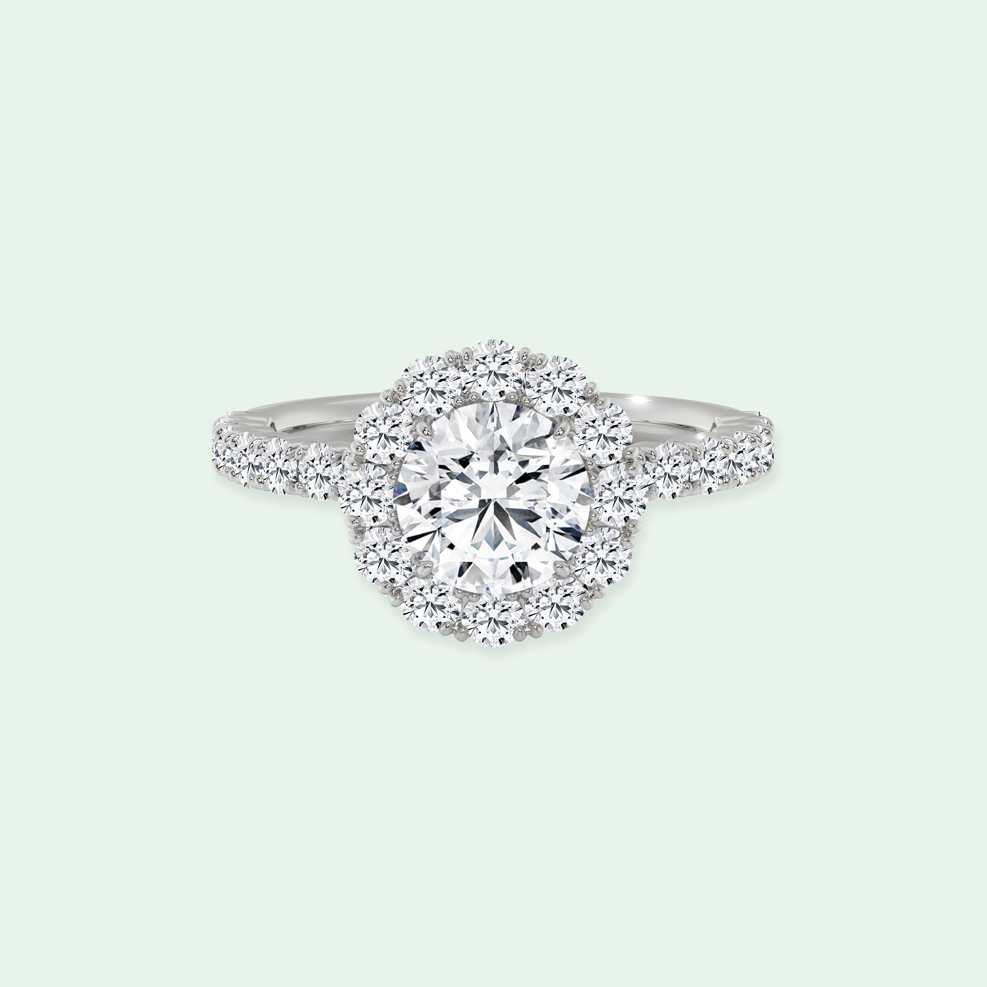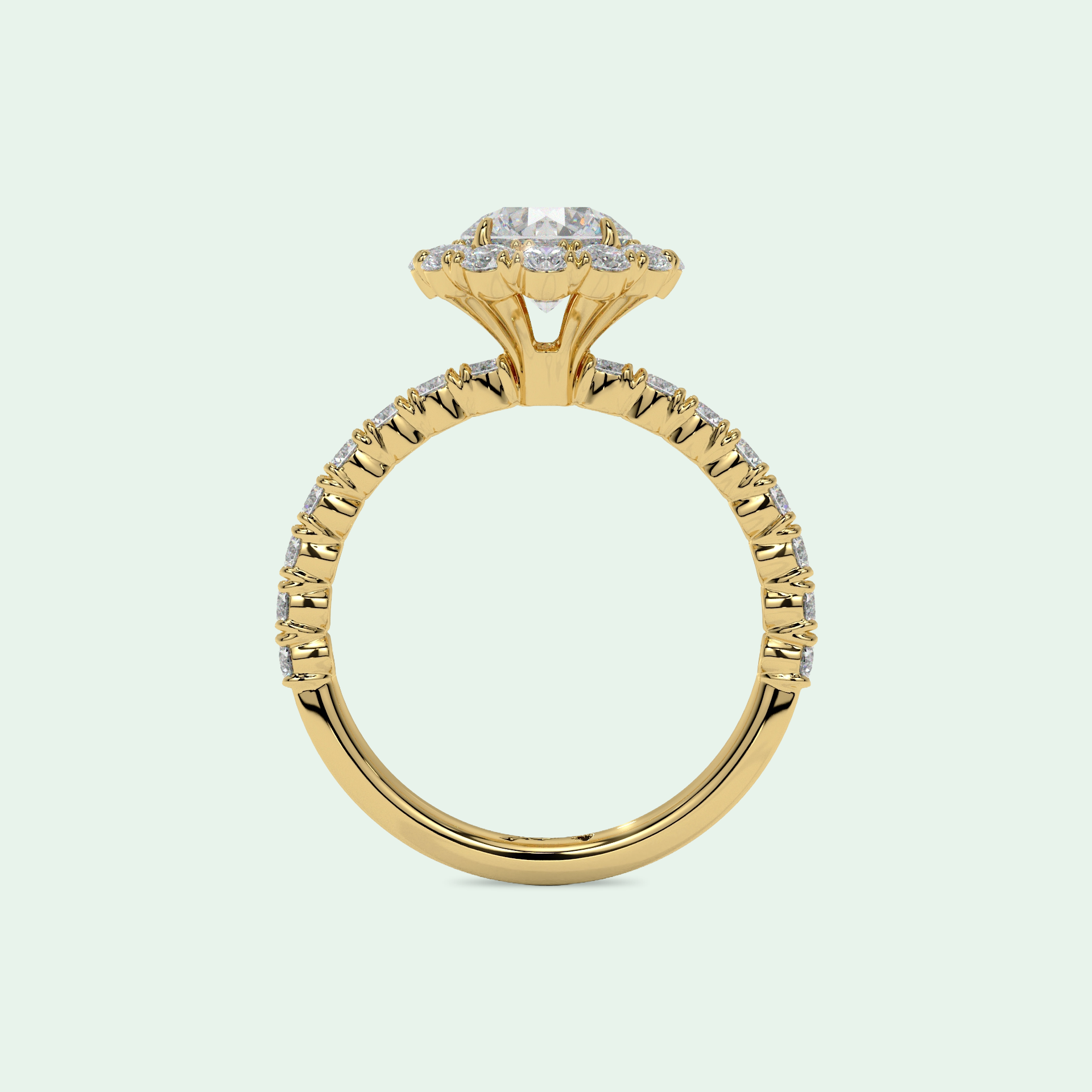 Allow the aura of nature to grace your love life as you adorn your finger with this Camellia Halo Ring. The meticulously designed halo complements the central diamond. So, wear it as a symbol of your blooming love or to complement your radiant beauty, the choice is always yours! It is a perfect piece to embody the love on your engagement day!