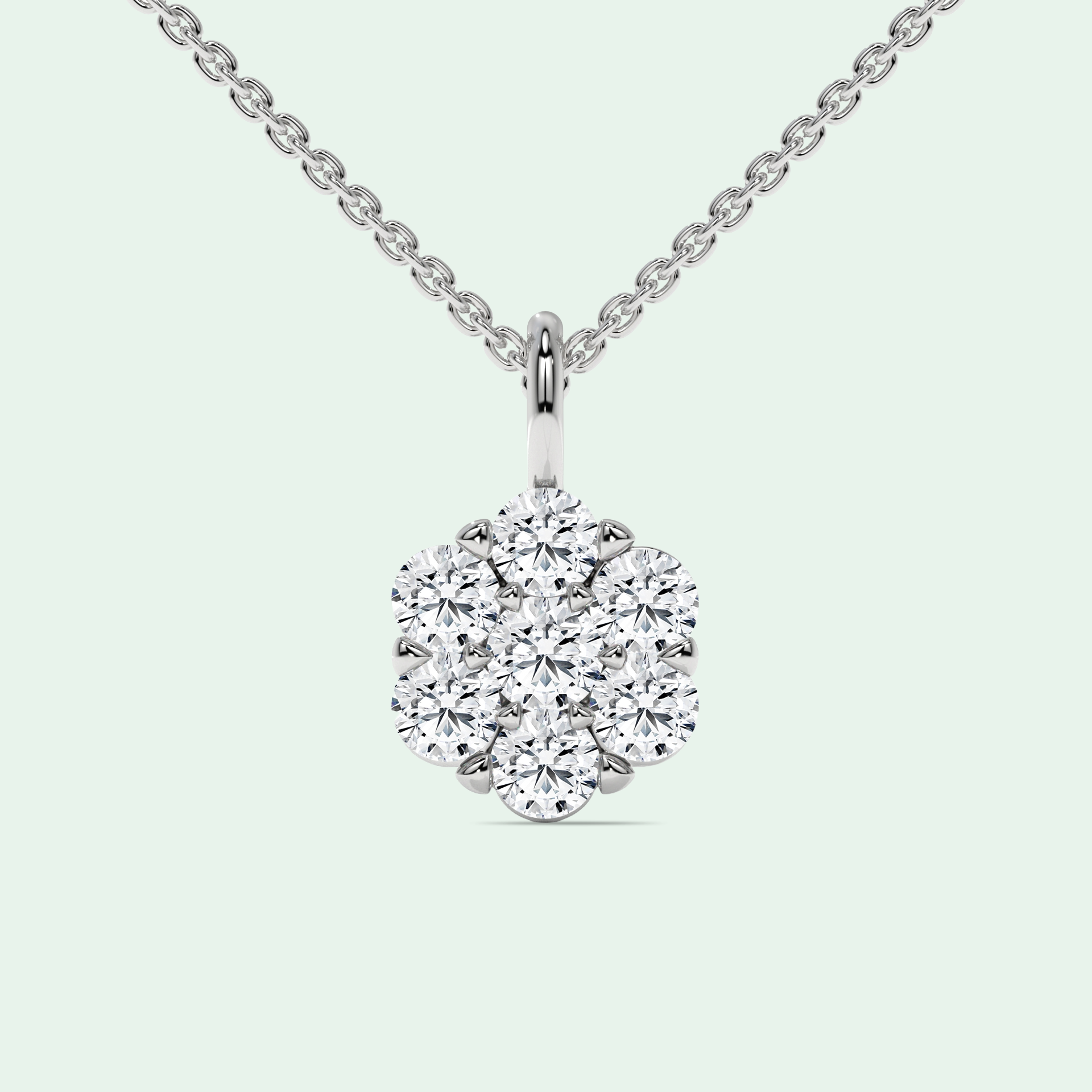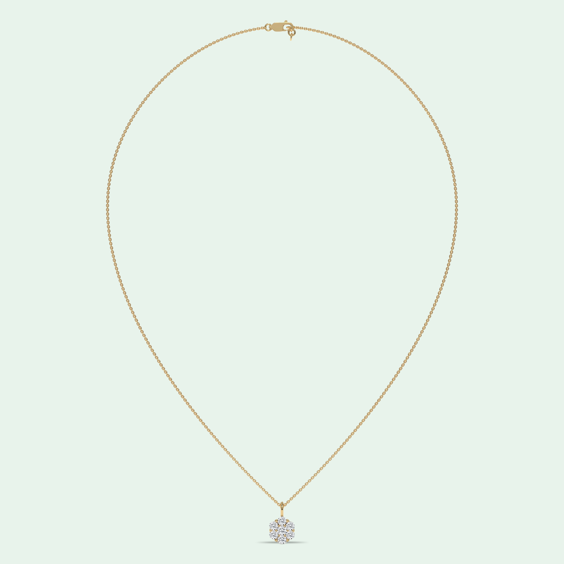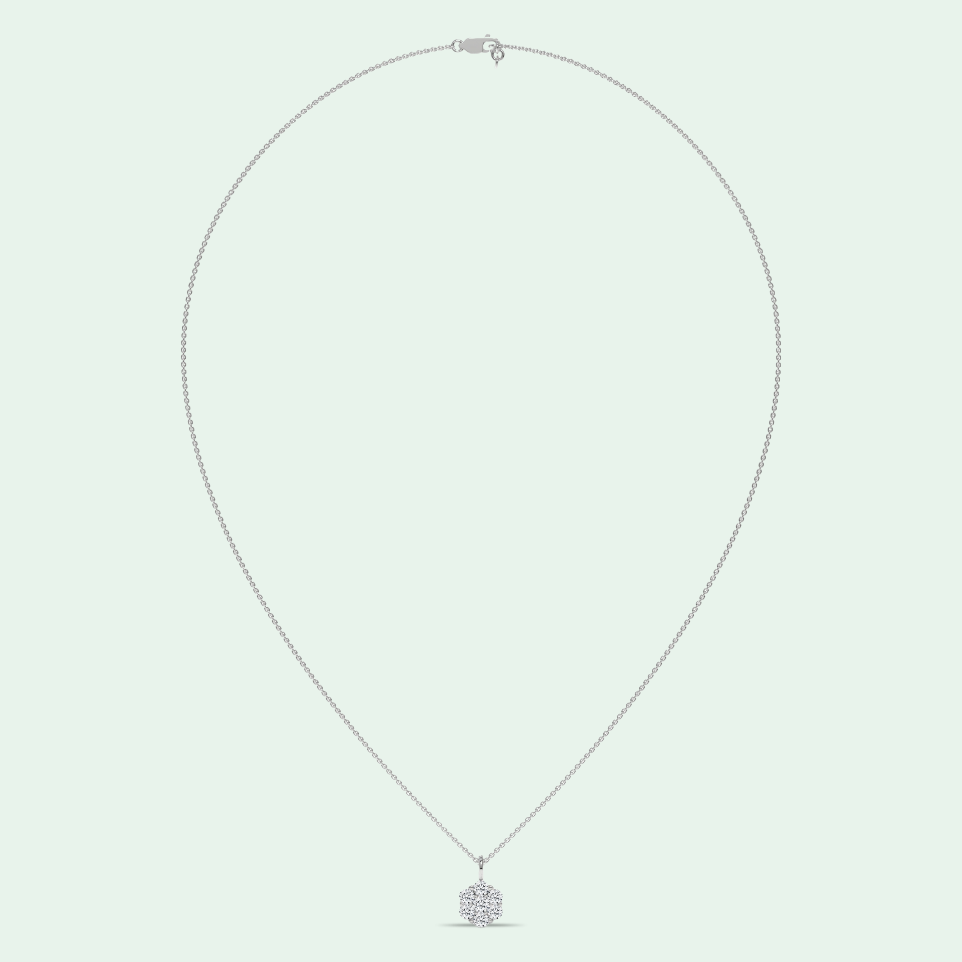 A dazzling display of seven perfectly set diamonds that create a radiant cluster effect. This elegant diamond necklace captures the light beautifully, making it ideal for both everyday wear and special occasions. A timeless piece of minimalist jewelry that adds sophistication to any look.