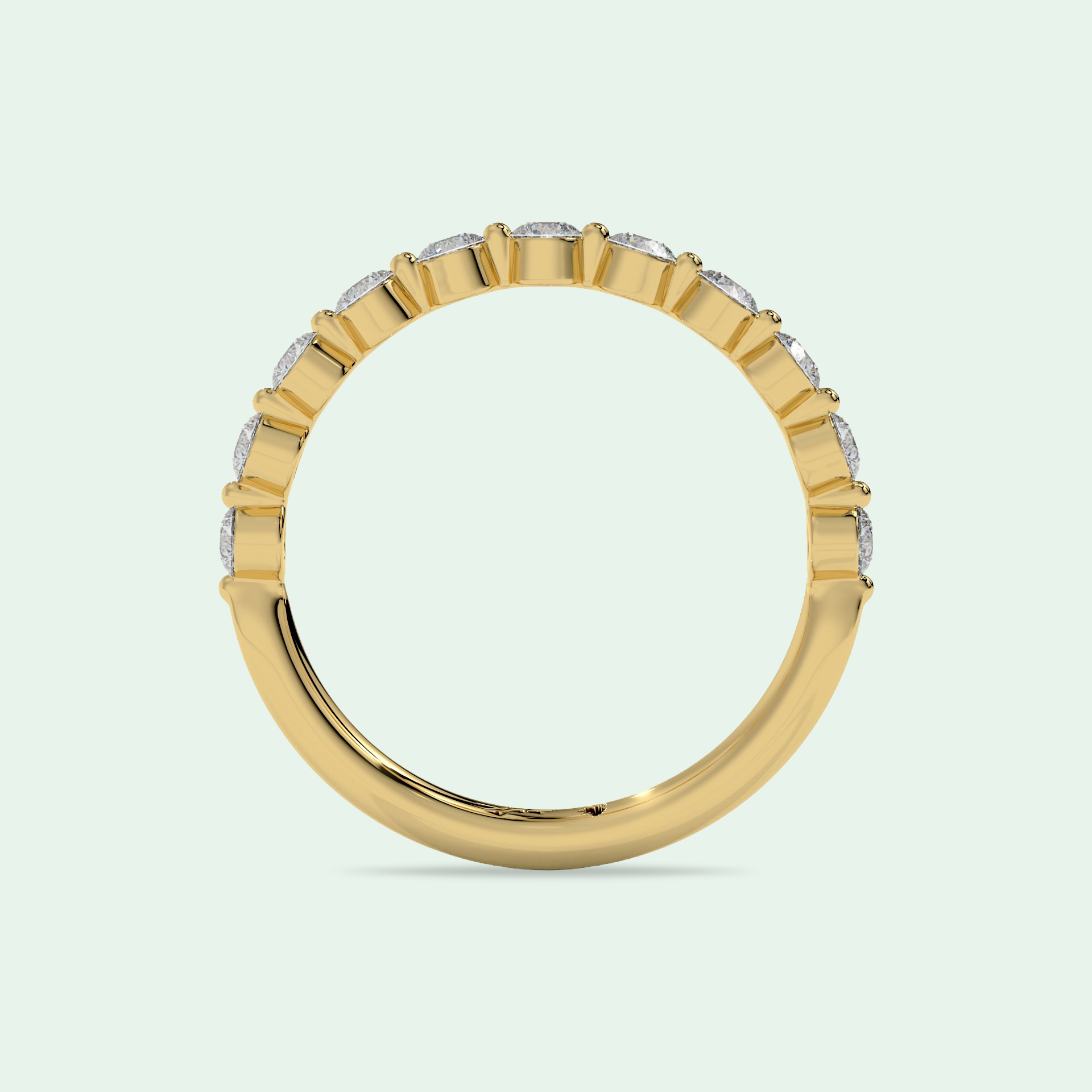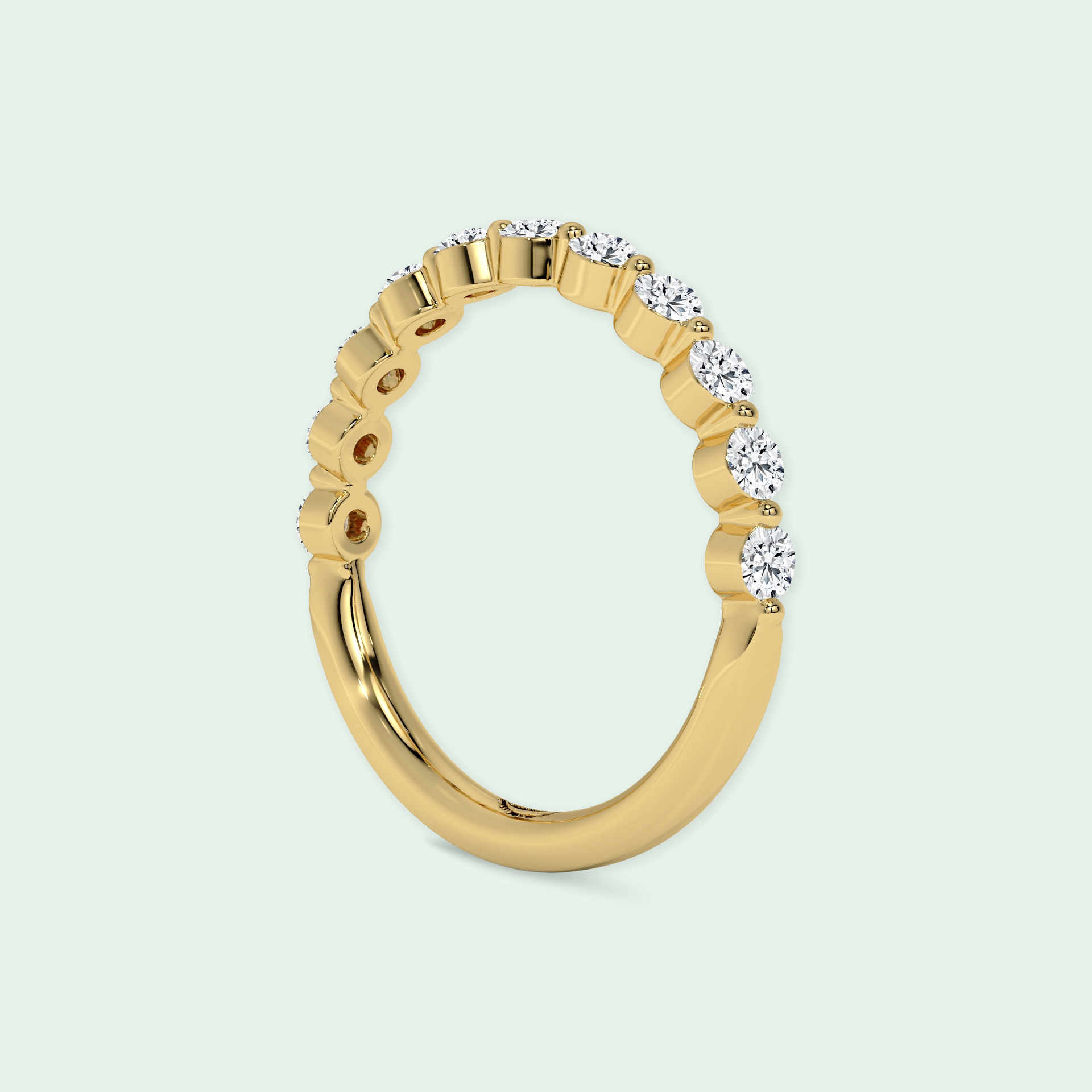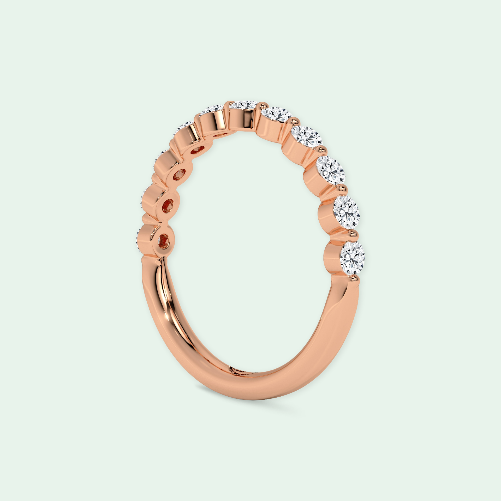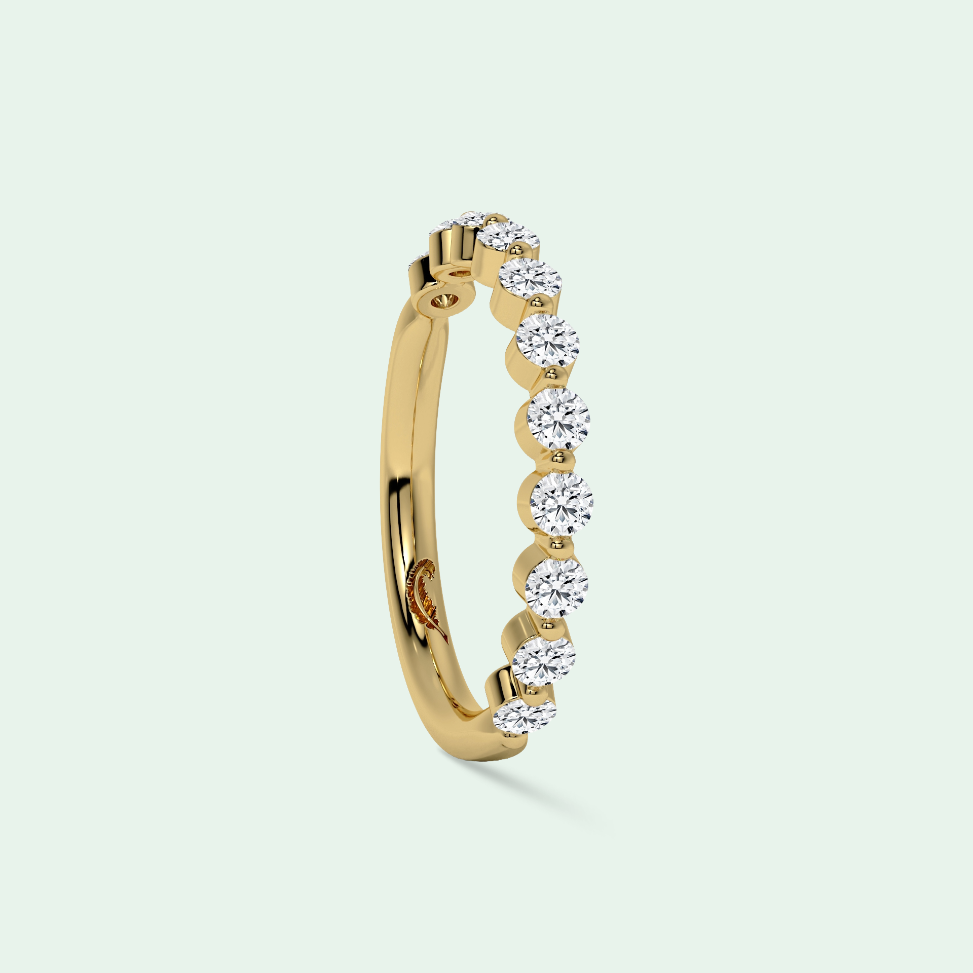 Imbued with the essence of timeless romance, the Mono Shared Claw Wedding Ring emerges as a beacon of eternal love. At its heart lies a round brilliant diamond, a celestial gem embraced by the tender grasp of four exquisite claws leading you the journey of your married life.