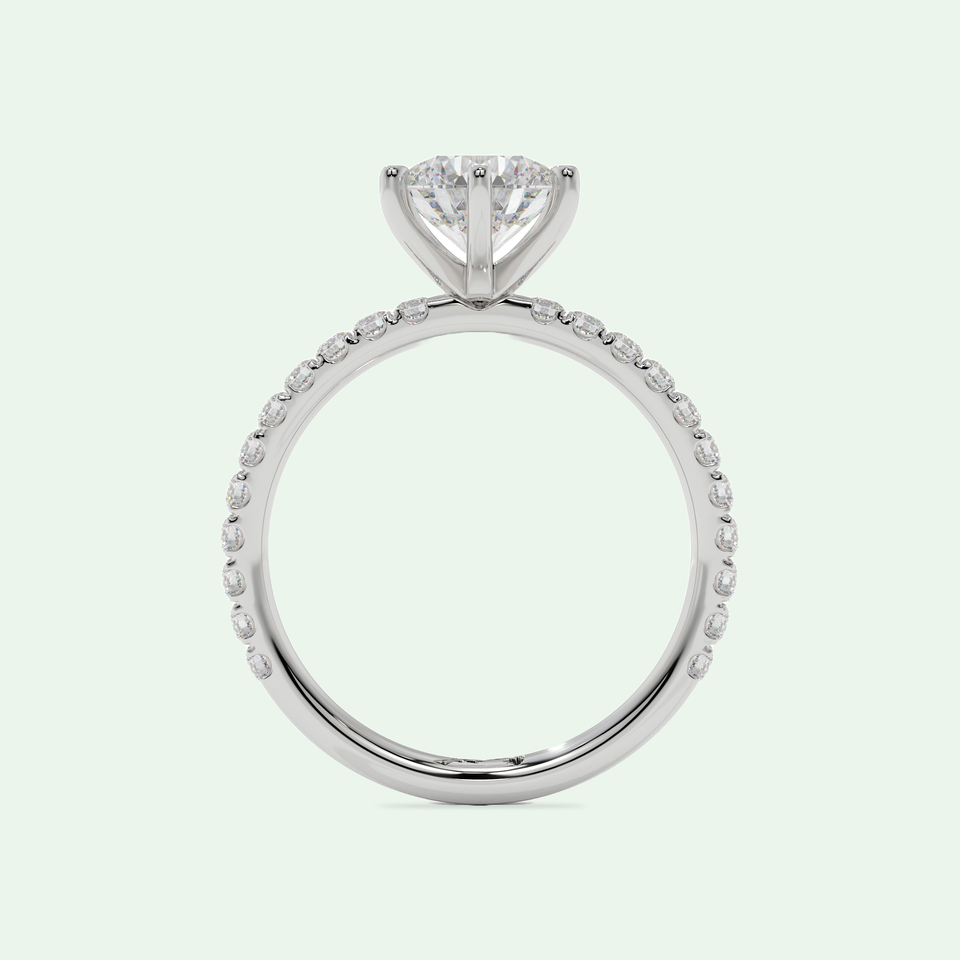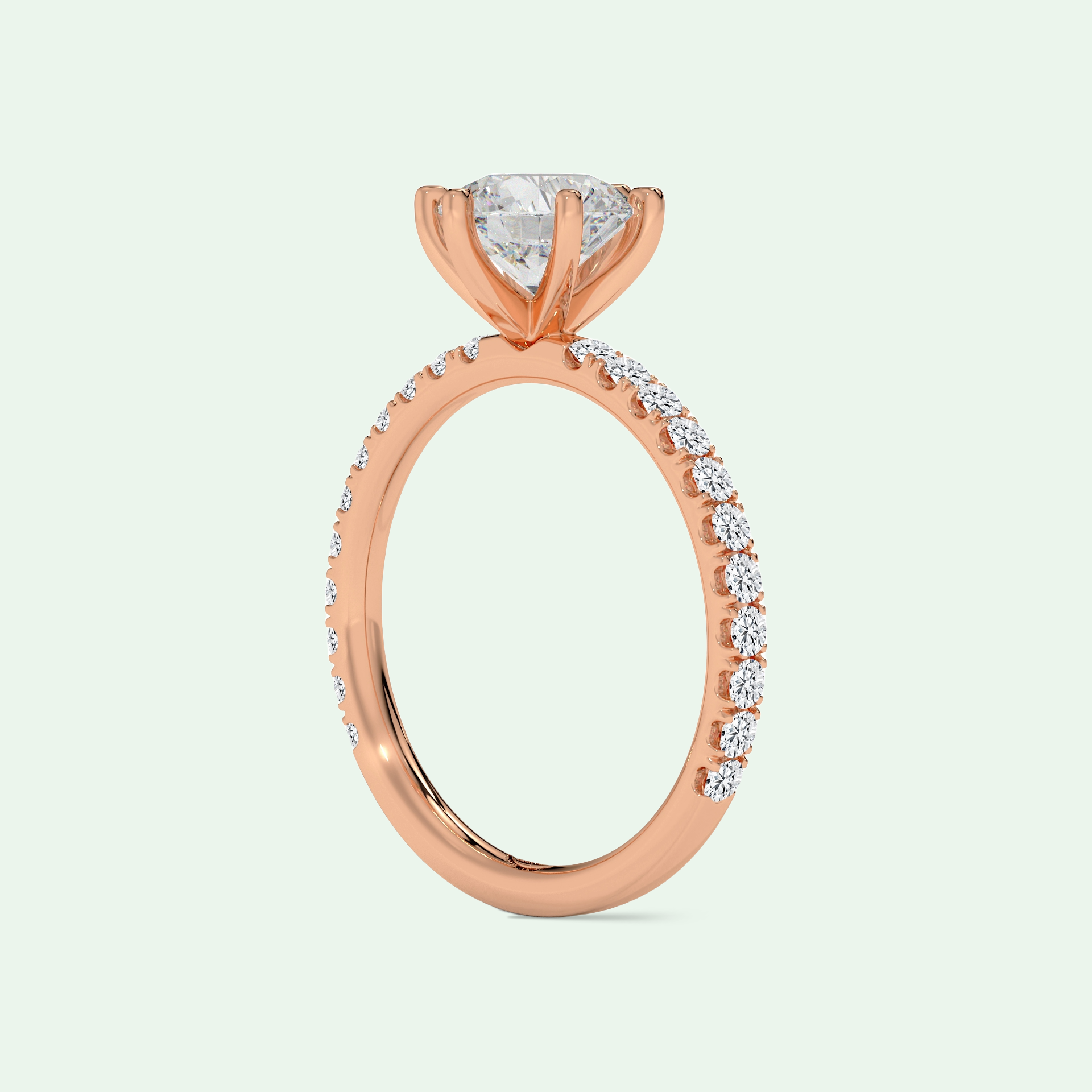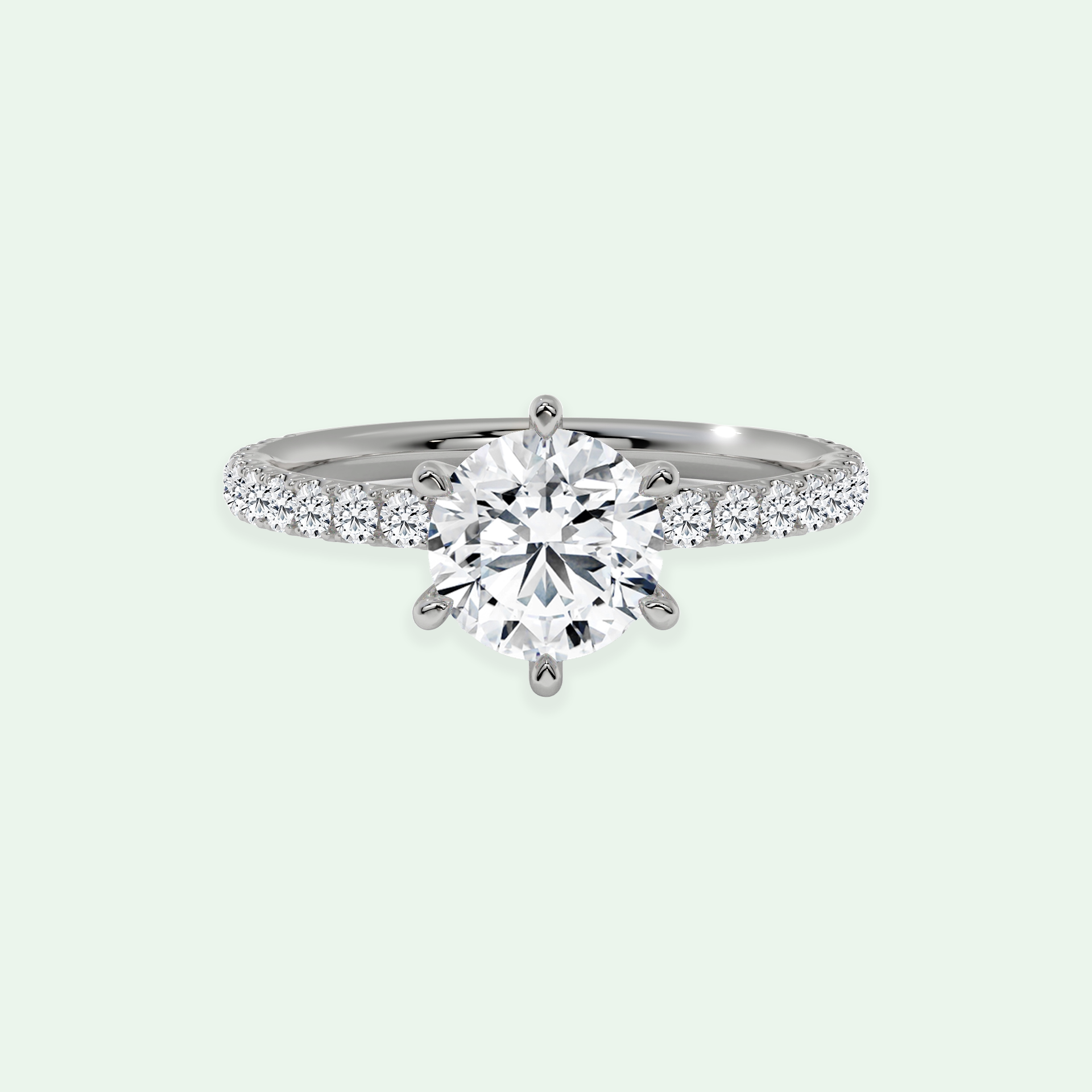 ORA Novo Engagement ring is a dynamo of eternal charm, crafted with exquisite attention to details. This ring features a magnificent round brilliant-cut diamond set in the centre of the band’s dazzling round accent stones, creating a celestial aura of brilliance.