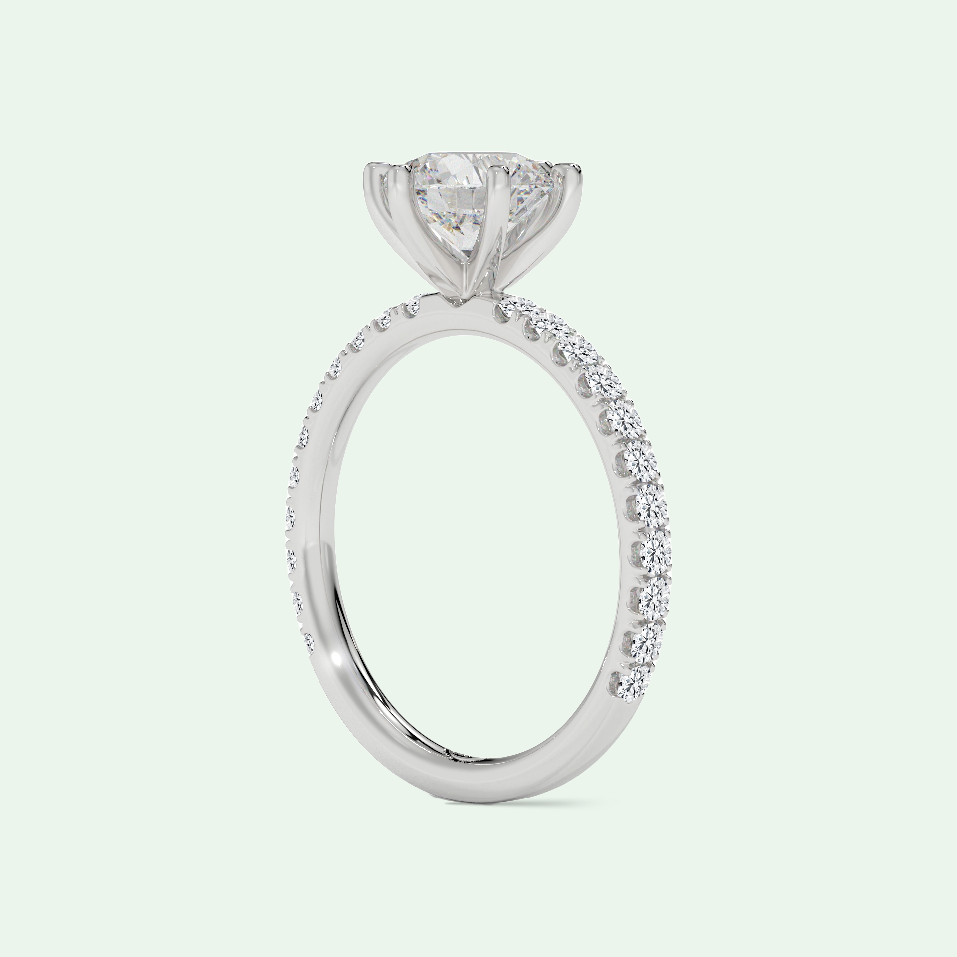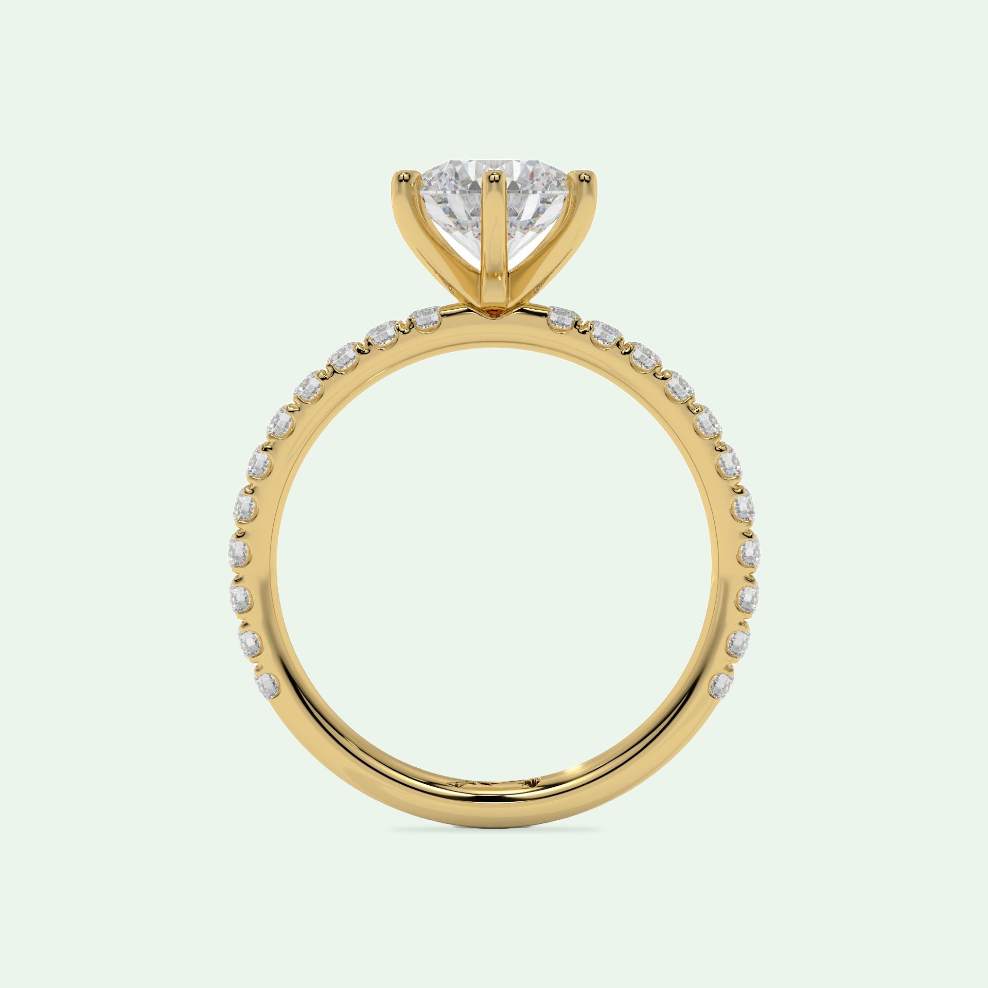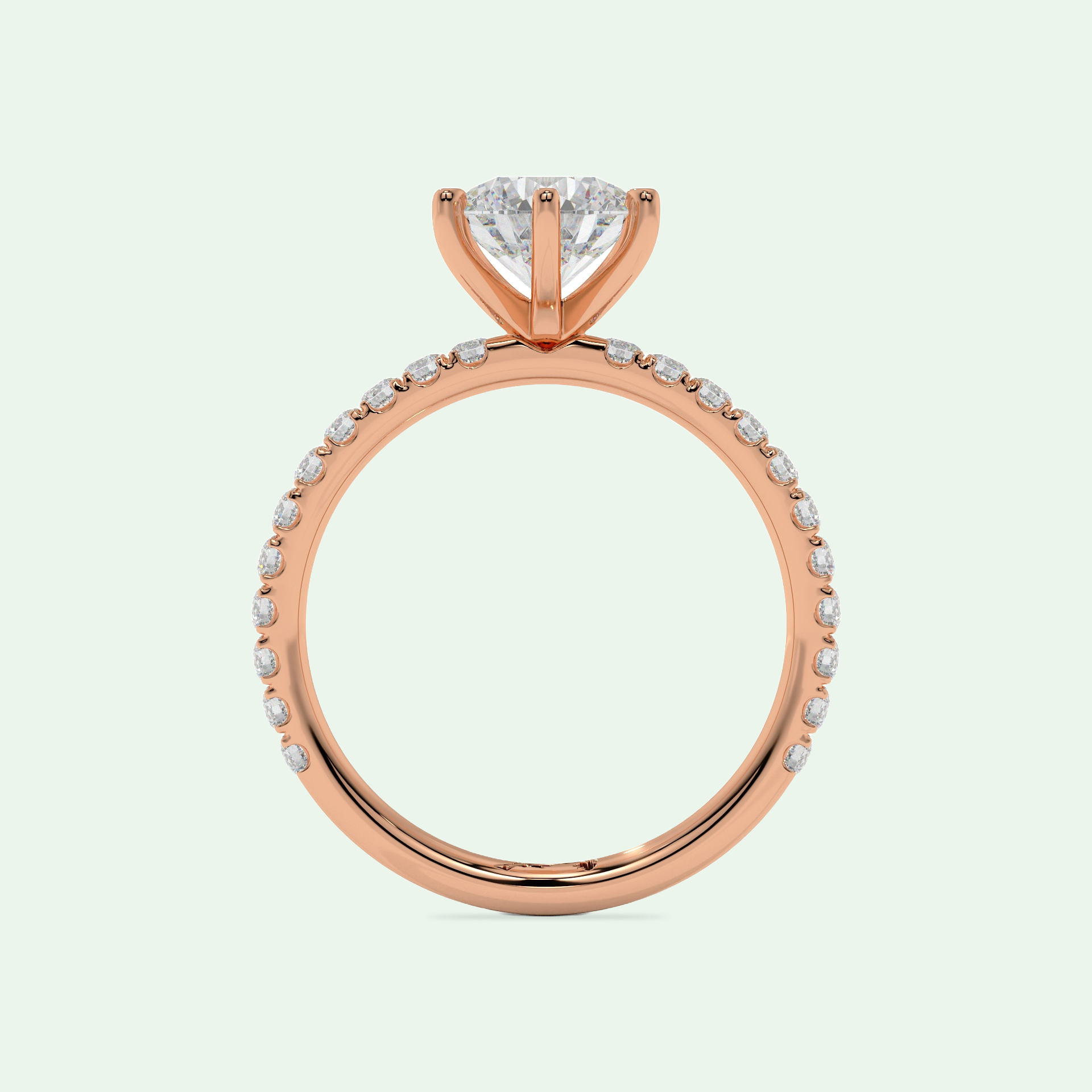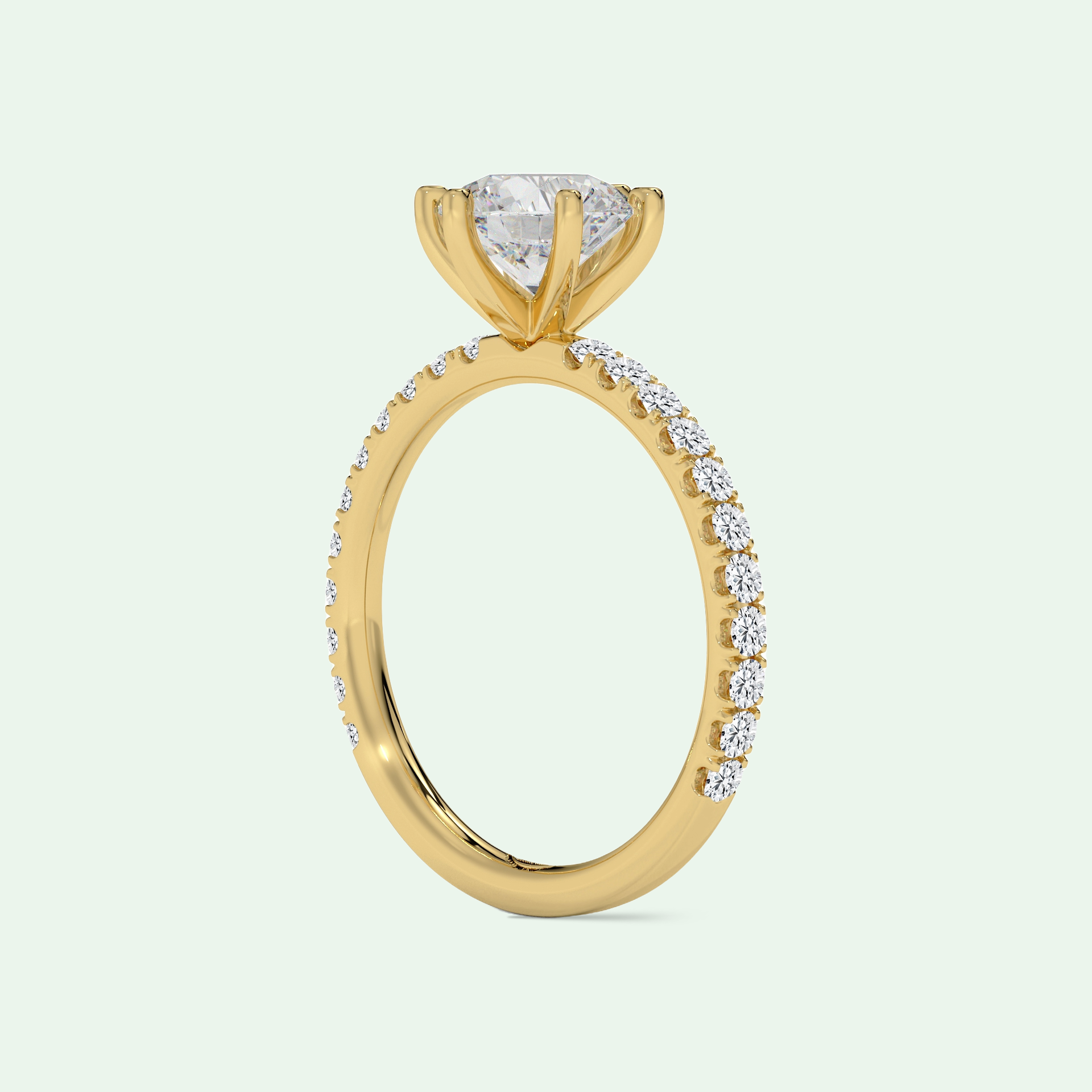 ORA Novo Engagement ring is a dynamo of eternal charm, crafted with exquisite attention to details. This ring features a magnificent round brilliant-cut diamond set in the centre of the band’s dazzling round accent stones, creating a celestial aura of brilliance.