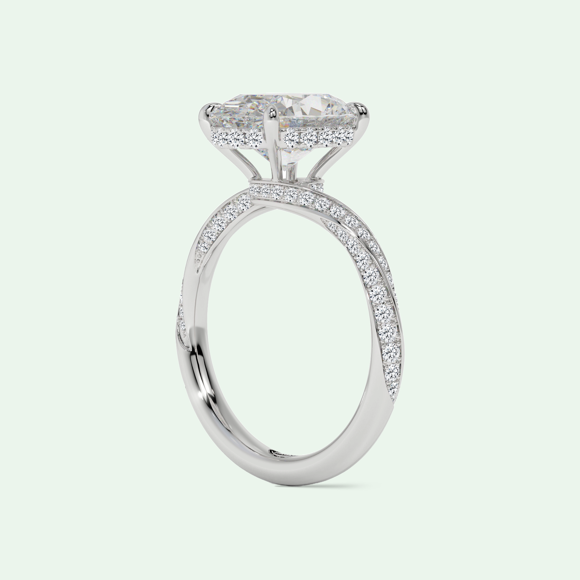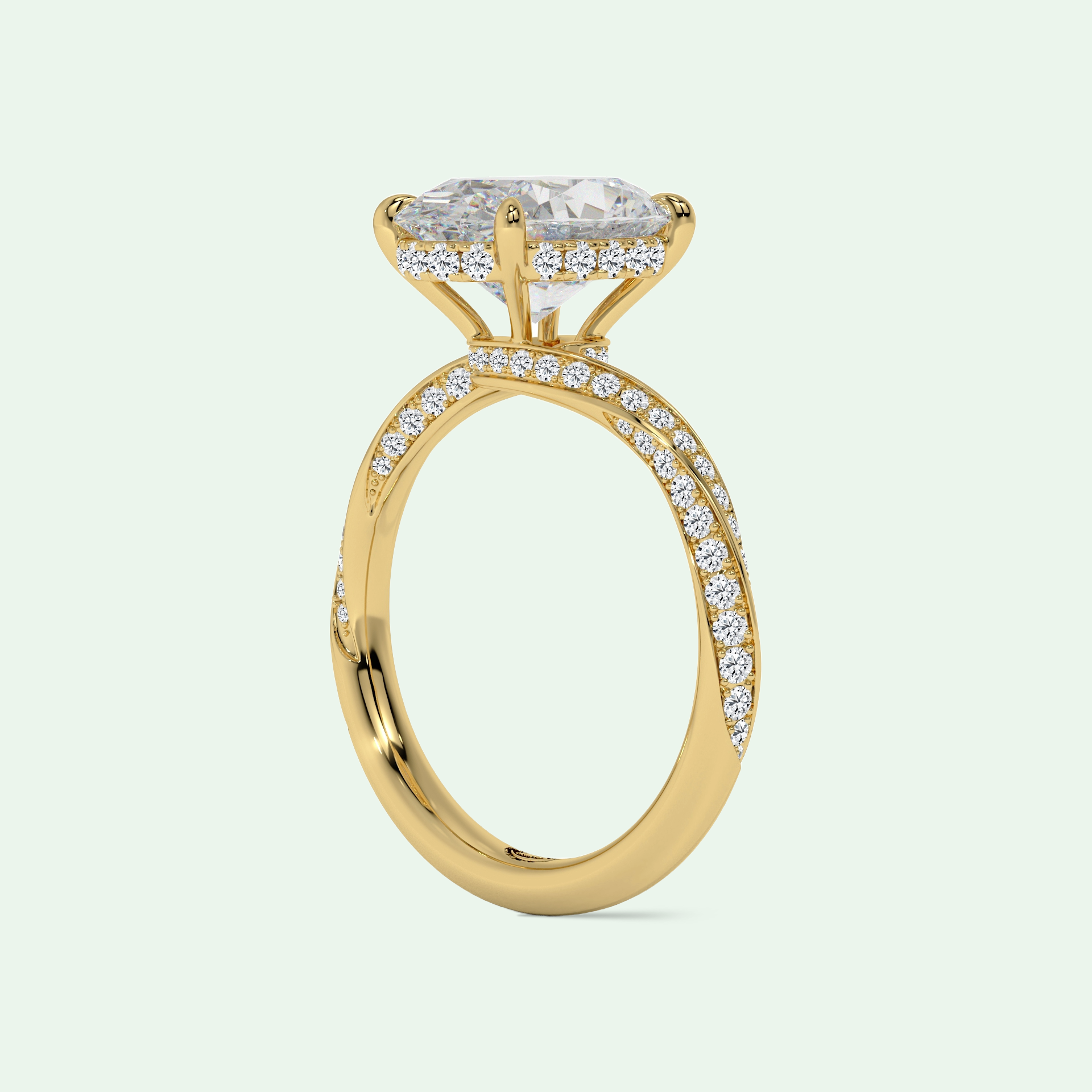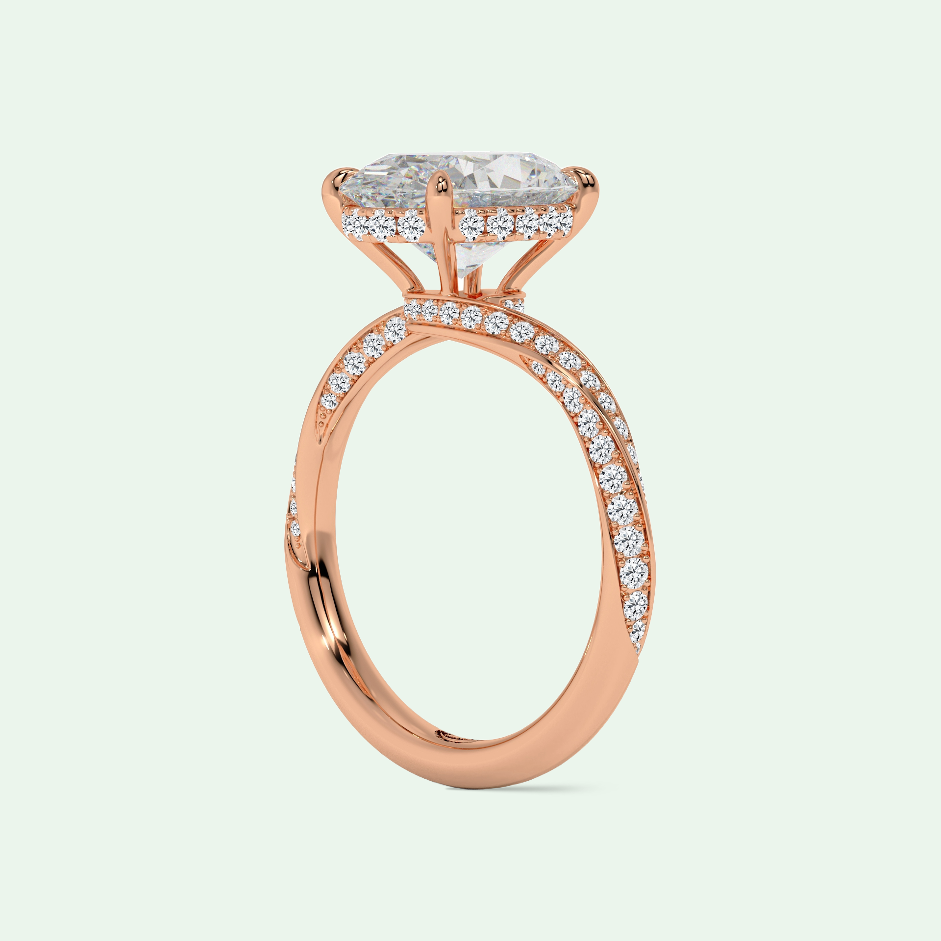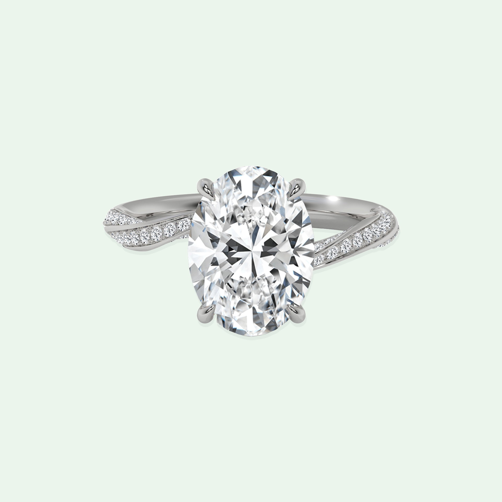 What amps her up more than a lovely ring on her finger? This Spiral Hidden Halo ring is synonymous to the radiating hidden glow that accentuates her mood. The dazzling round-cut accent stones set in spiraling pattern around the band enbellished with oval centre diamond is a sunbeam for your beautiful lady.